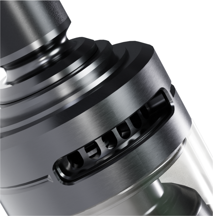 The Sparrow uses a top-to-bottom diffused airflow system. Air enters at the top, travels down through the tank, and hits your coil from beneath. This setup stops e-liquid from leaking out the airflow holes because there aren’t any bottom-facing holes for liquid to escape from. You get smooth, consistent airflow without the mess. The diffused design spreads the air evenly across your coil rather than blasting it from one direction, which helps with flavor.