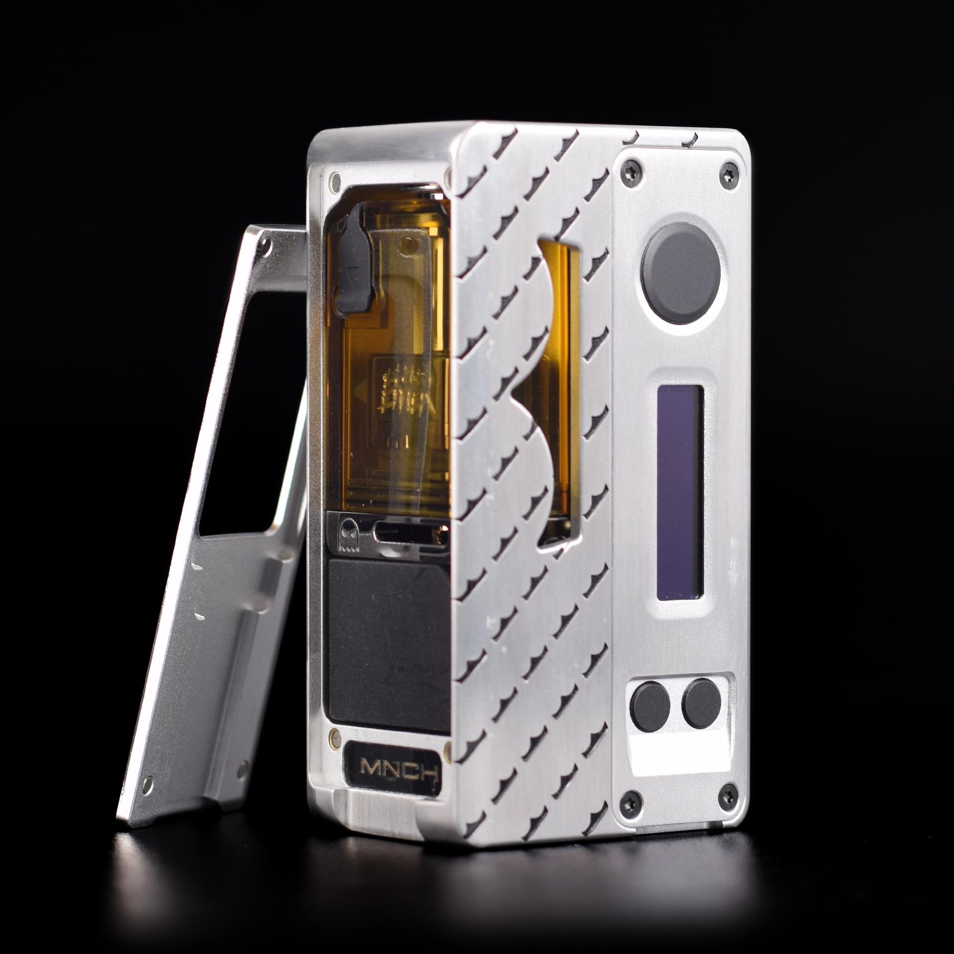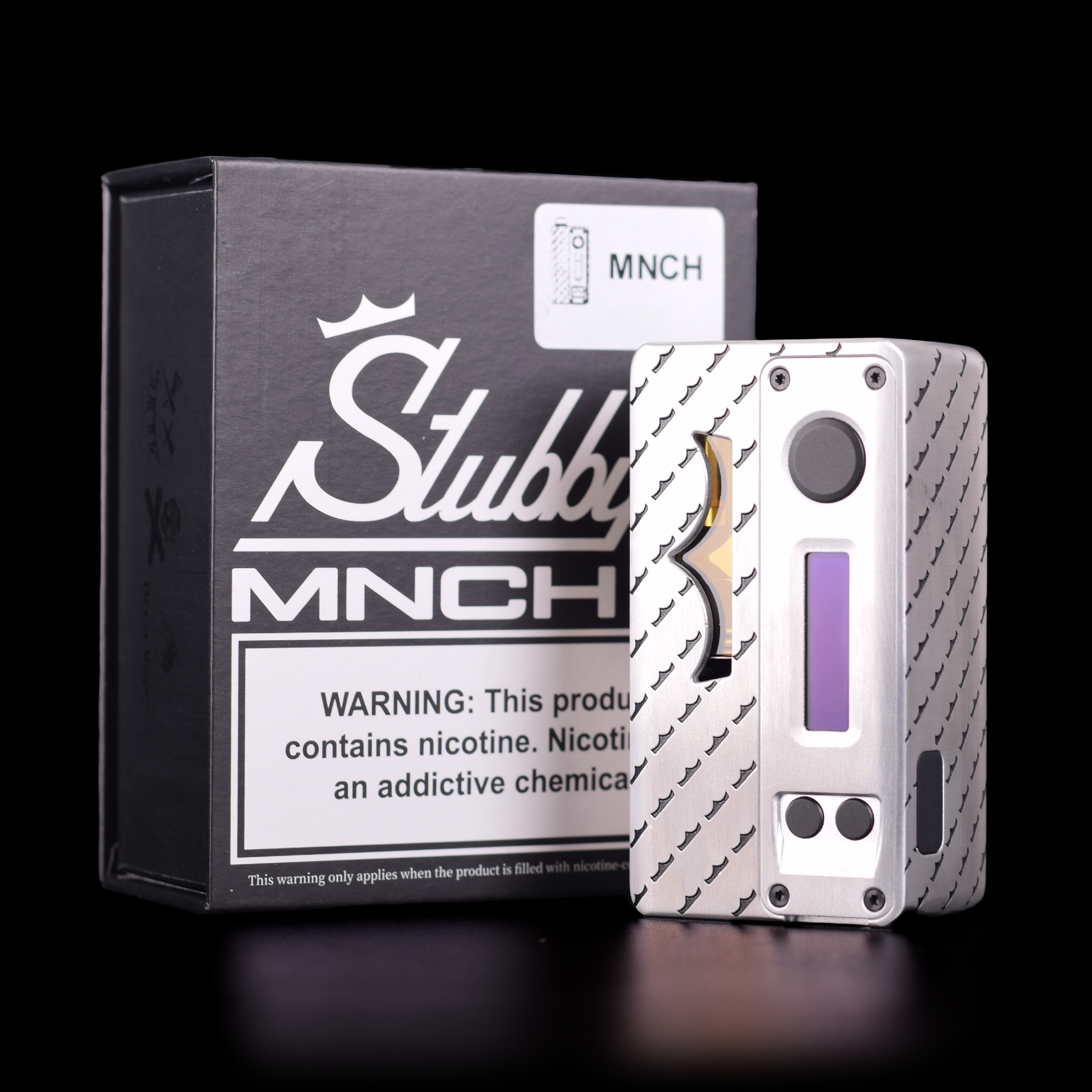 This device is a collaboration between Suicide Mods, Vaping Bogan, and Orca Vape and now MNCH or Monarchy. It’s designed to be accessible to vapers of all levels of experience. It can be used with any Boro tank and your favorite bridge/RBA or with the included Ether Boro tank. The Stubby AIO MNCH edition is powered by an external 18650 battery (Not Included) and has a maximum wattage of 60 watts on the DNA60 chipset. Whether you’re a beginner or a more experienced vaper, the Stubby AIO is sure to meet all of your needs.